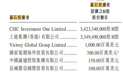 这次IPO邮储安排了六大基石投资者,他们分别是中国船舶(CSIC)、上港集团、海航(Victory Global)、国家电网、诚通控股、长城资产